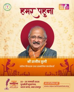 Those interested in attending can register online through the official website www.raipursahityautsav.org. Organizers emphasize that the festival will serve as a strong medium to connect Chhattisgarh’s cultural soul, folk traditions, and literary consciousness with the younger generation. Visitors to Purkhouti Muktangan will witness a beautiful confluence of the state’s rich cultural heritage and contemporary literary expressions.
