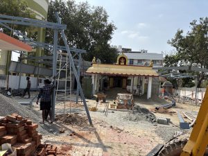 We decided to make the most of the remaining time and find a nearby temple. Checking the location, we spotted a Ganpati temple close by. When we reached, renovation work was underway—dust, scattered materials, everything in disarray.